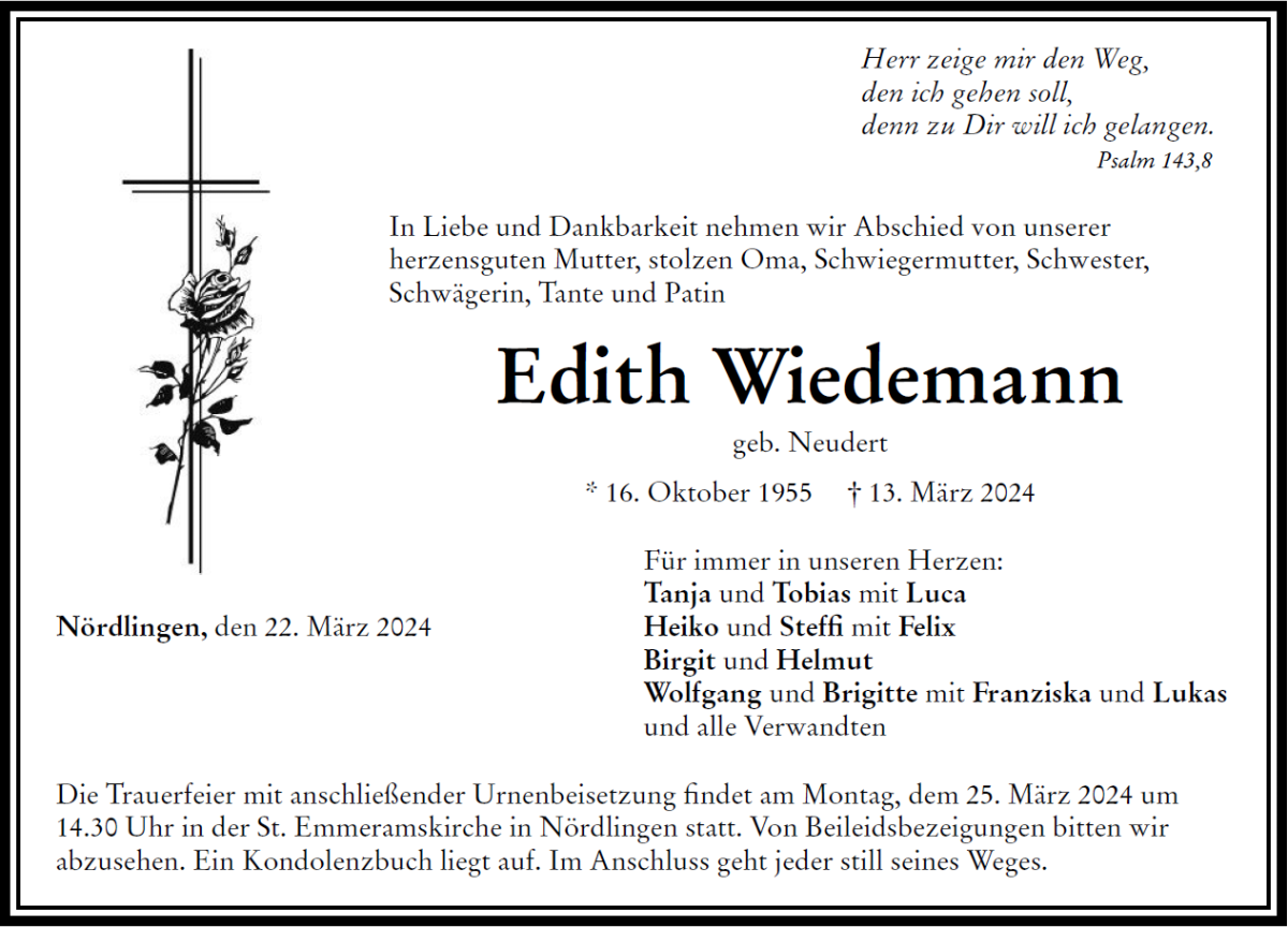Edith Wiedemanngestorben am 13. März 2024
