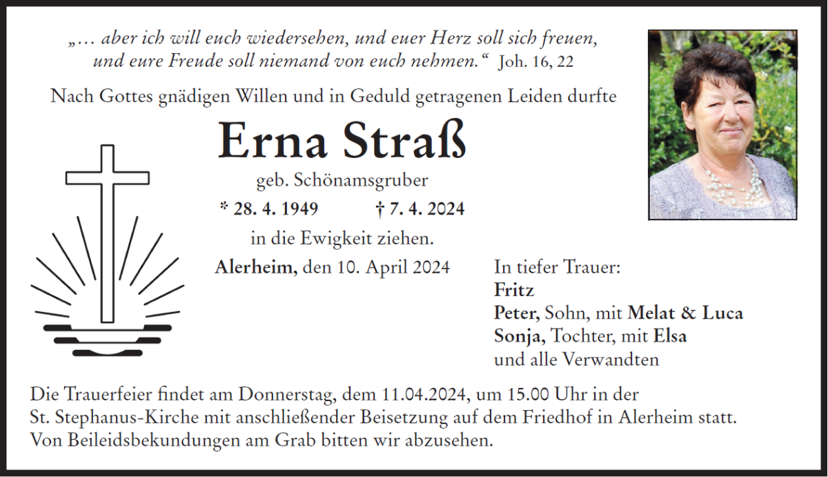 Trauerfeier mit anschließender Beerdigung, Friedhof Alerheim