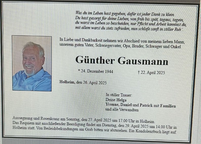 Requiem mit anschließender Beerdigung, Friedhof Holheim