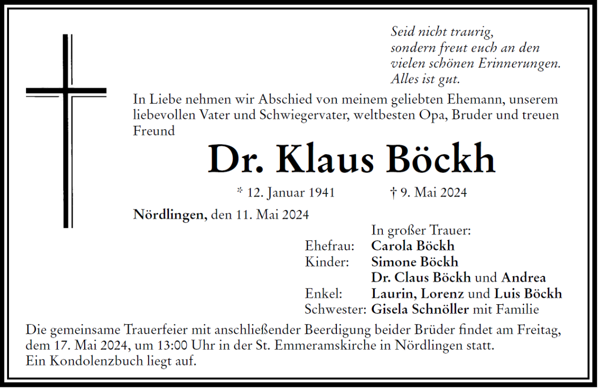 Dr. Klaus Böckhgestorben am 9. Mai 2024