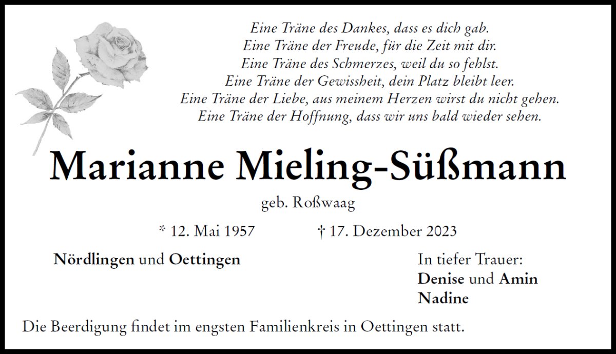 wir wünschen Ihnen von Herzen viel Kraft, dass Sie Menschen um sich haben, die Ihnen in dieser schweren Zeit beistehen und Halt geben. Zusätzlich können Sie auf dieser Gedenkseite Erinnerungen teilen und so das Andenken gemeinsam wachhalten.